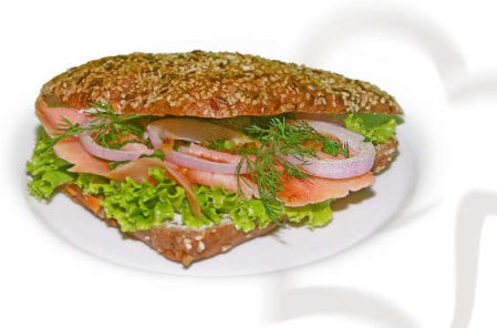 with smoked salmon, red onion and honey-mustard-dill-sauce