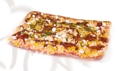 mit Speck, Käse und Zwiebeln auf Sauerrahm