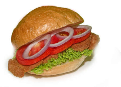 mit Tomate, Gurke, rote Zwiebel und Remouladensosse